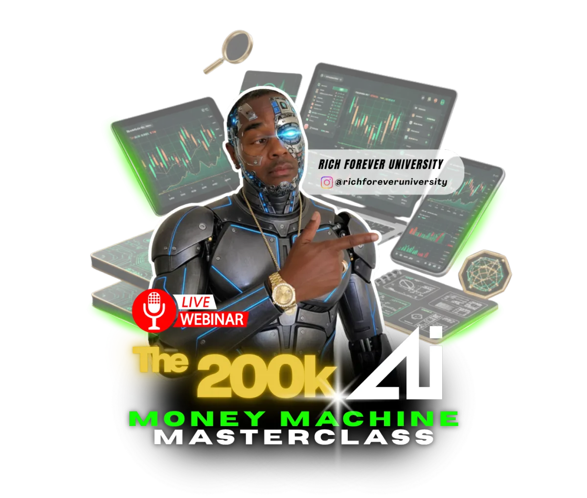 Disclaimer: The AI Money Machine™, Millionaire March™, and Rich Forever University™ are educational platforms only. We are not licensed financial advisors, brokers, or investment advisors.
